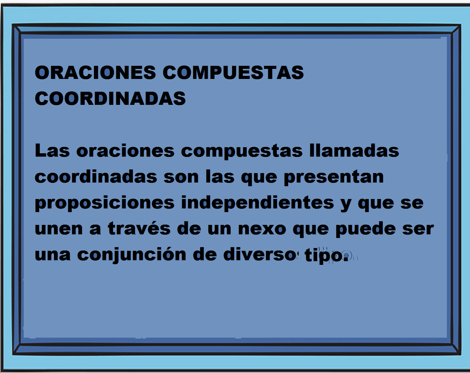 Sabemos que las oraciones compuestas llamadas coordinadas son las que presentan proposiciones independientes y que se unen a través de un elemento de enlace que puede ser una conjunción de diverso tipo.
